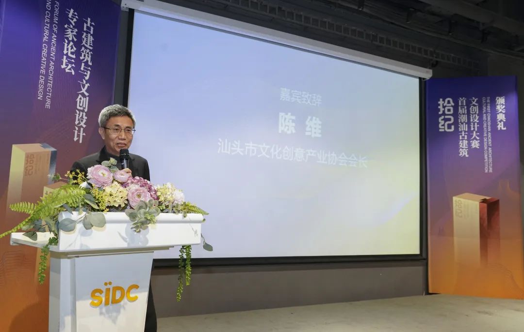 汕头市文化创意产业协会会长陈维发表致辞,潮汕古建筑的历史源远流长,不仅有独特、丰富的文化内涵,还有很高的美学价值。非遗项目应该得到大家的重视和传承,而如何把潮汕古建筑文化挖掘、融入到文创设计、日常生活中,如何用当代的思维美学和视野去传播它的价值,是青年一代设计师们的重任,也是目前高职院校需要进行的日常教学和实训中的新课程。