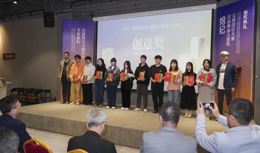本次文创设计大赛颁奖典礼共设金奖一名、银奖二名、铜奖五名、创意奖十名。自六月份开赛至今,主办方陆续收到来自广东省各高校及艺术设计公司的参赛作品近百份。经过专家评审,最终评选出18组获奖作品。获奖作品形式多样,在潮汕古建筑传统文化的基础上大胆创新,风格独特且实用美观。金奖作品的设计师代表在典礼上发言,讲述作品创意来源、设计思路,让大众了解青年一代设计师如何通过设计将现代人文和厚重的历史文化完美融合。