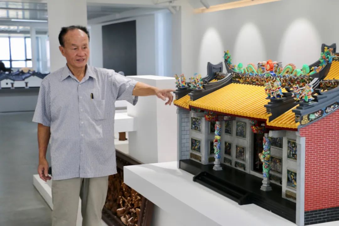 非遗传承人纪传英在展厅设置了潮汕古建筑模型。