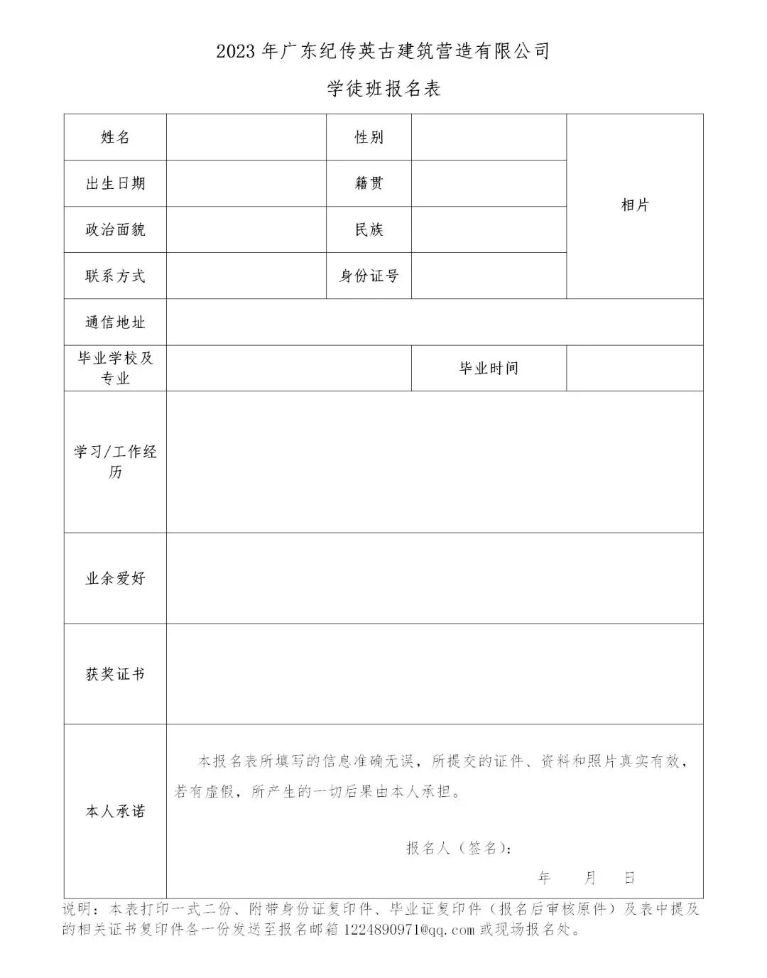 附件:学徒制班报名表