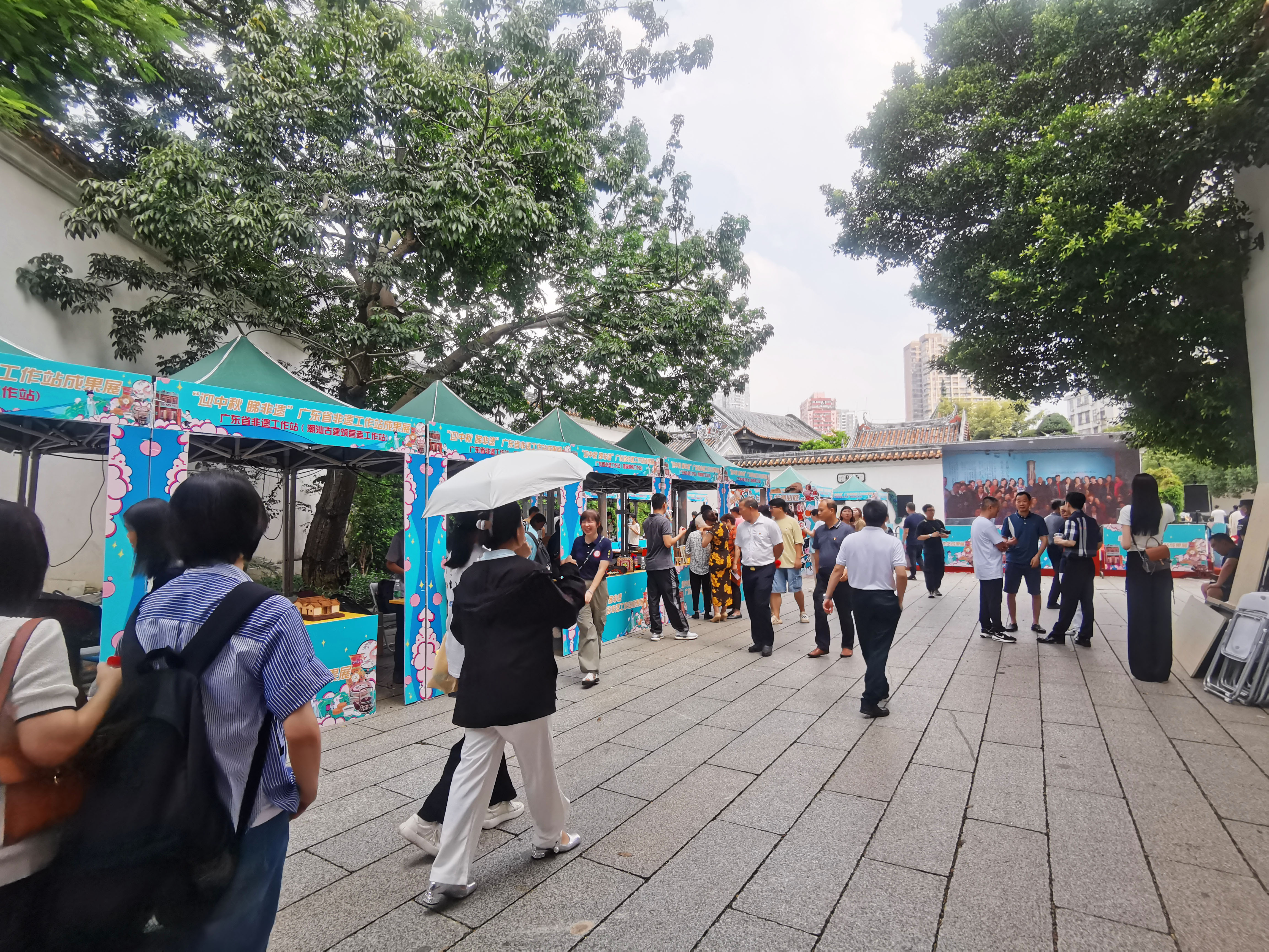 现场设有面向公众的广州剪纸灯笼制作、荔湾西关水菱角现场制作品尝、东莞莞香产品、佛山陶艺产品、韶关瑶族刺绣、江门陈皮、肇庆端砚、潮州古建筑模型等丰富多彩的非遗集市活动,全方位呈现广东省非遗工作站非遗保护传承成果,多维度展示岭南非遗项目的魅力。