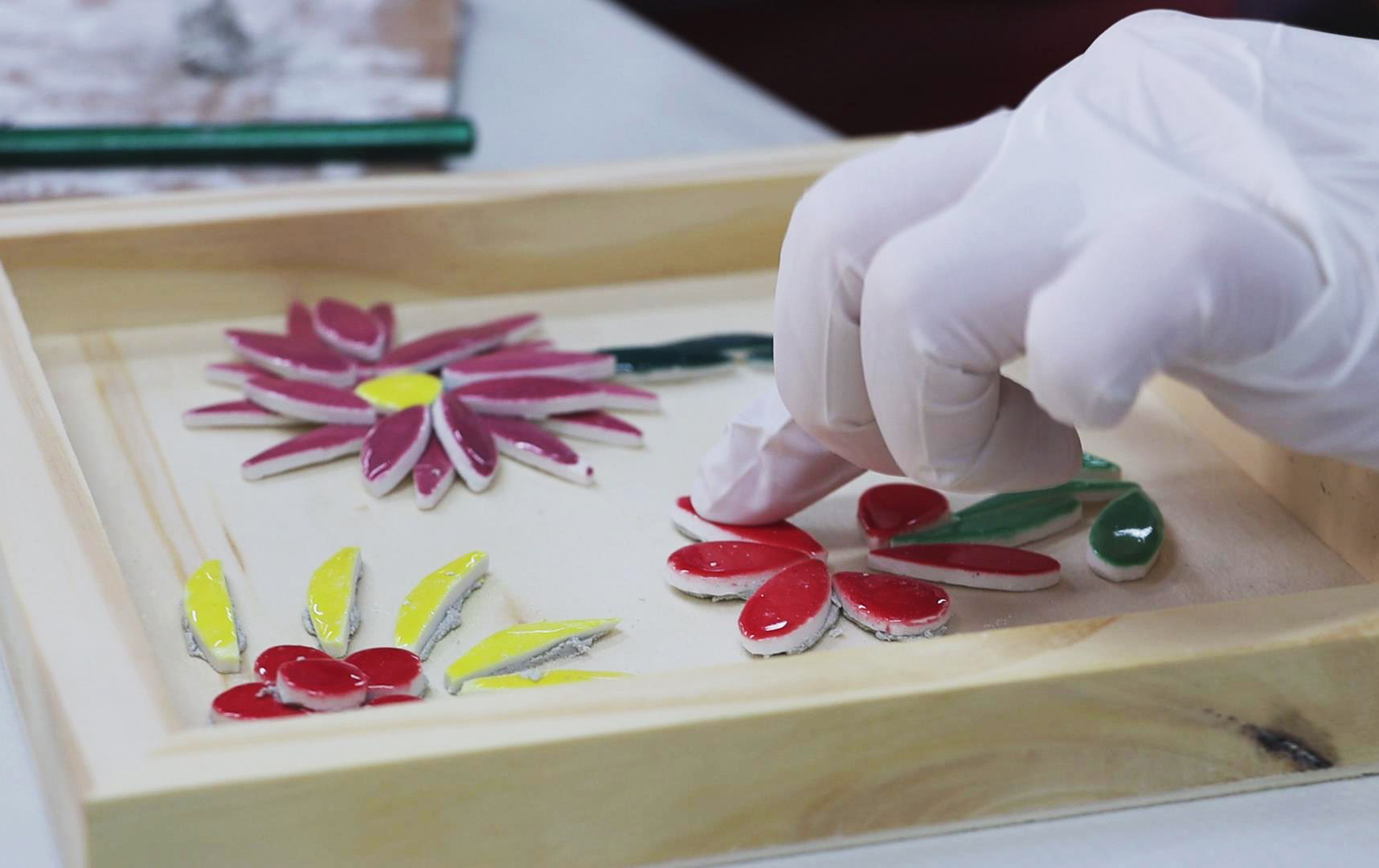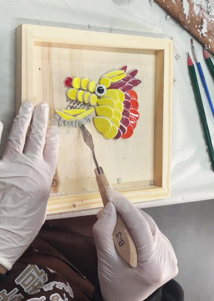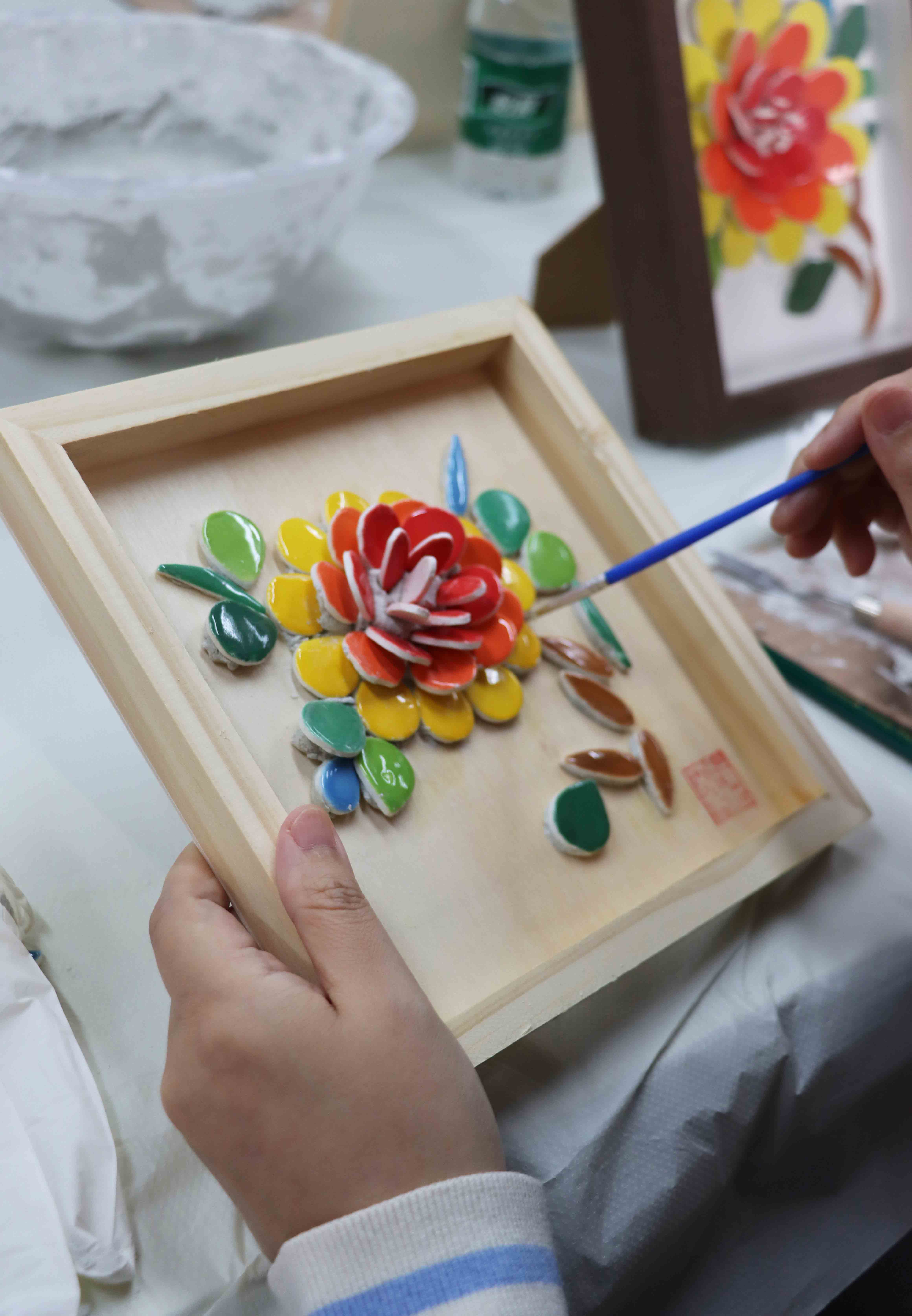 女神们通过观赏古建筑模型和潮汕建筑装饰工艺品,接触、认识、了解潮汕古建筑及建筑装饰技艺。 活动现场,女神们通过教学视频及导师讲解初步了解嵌瓷技艺,并动手制作嵌瓷作品。 认真的女人最美!女神们专心地创作着独属于自己的嵌瓷作品,时不时与身边的好友交流,现场气氛十分活跃。 一幅幅生动的嵌瓷作品如花般绽放,逐渐展现在我们眼前,花朵、小动物、水果...应有尽有,每一幅嵌瓷作品都被赋予了美好的寓意。 春风如你,熠熠芳华 世间美好,皆与你随行 祝愿所有的女神们 节日快乐!“嵌瓷”初体验