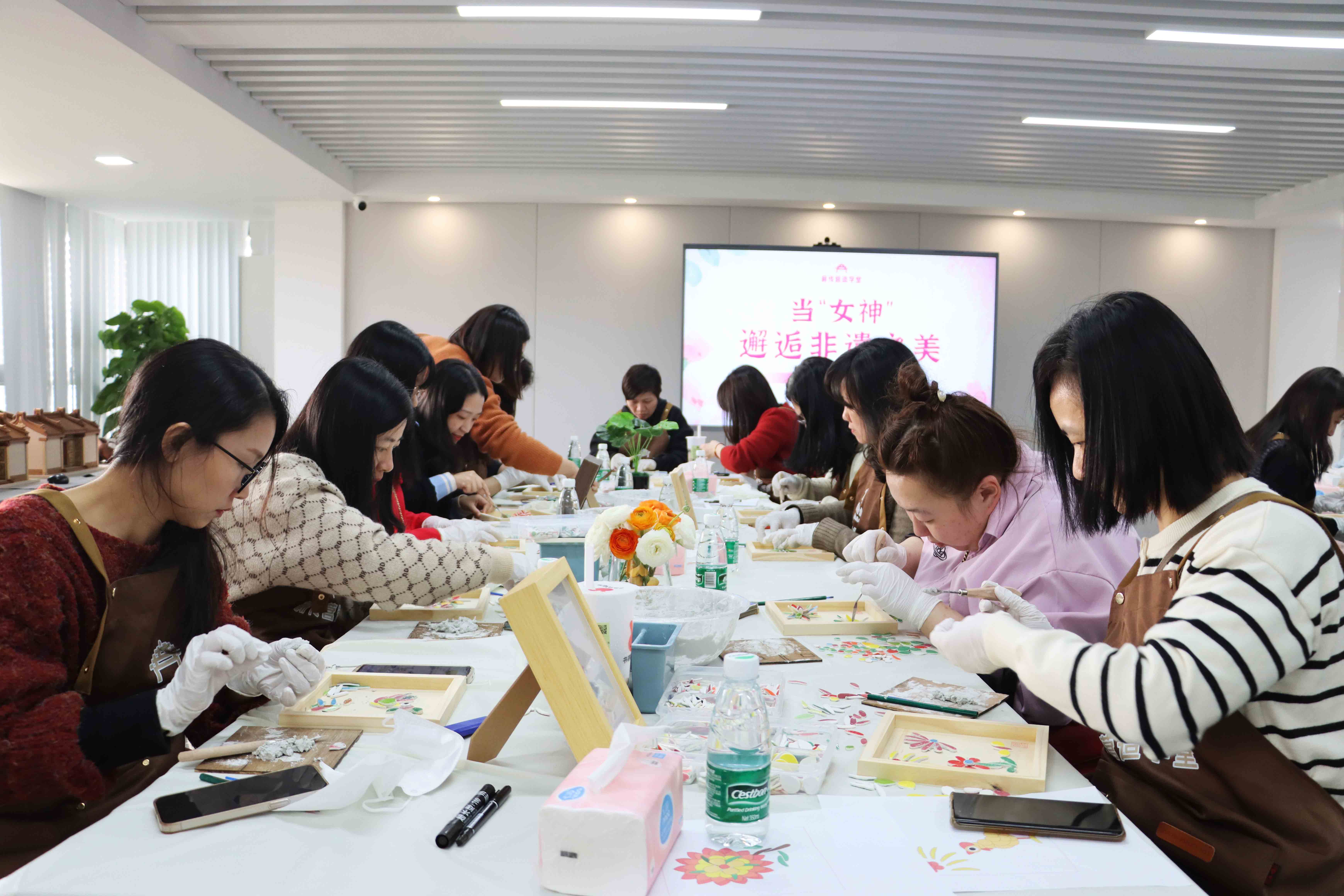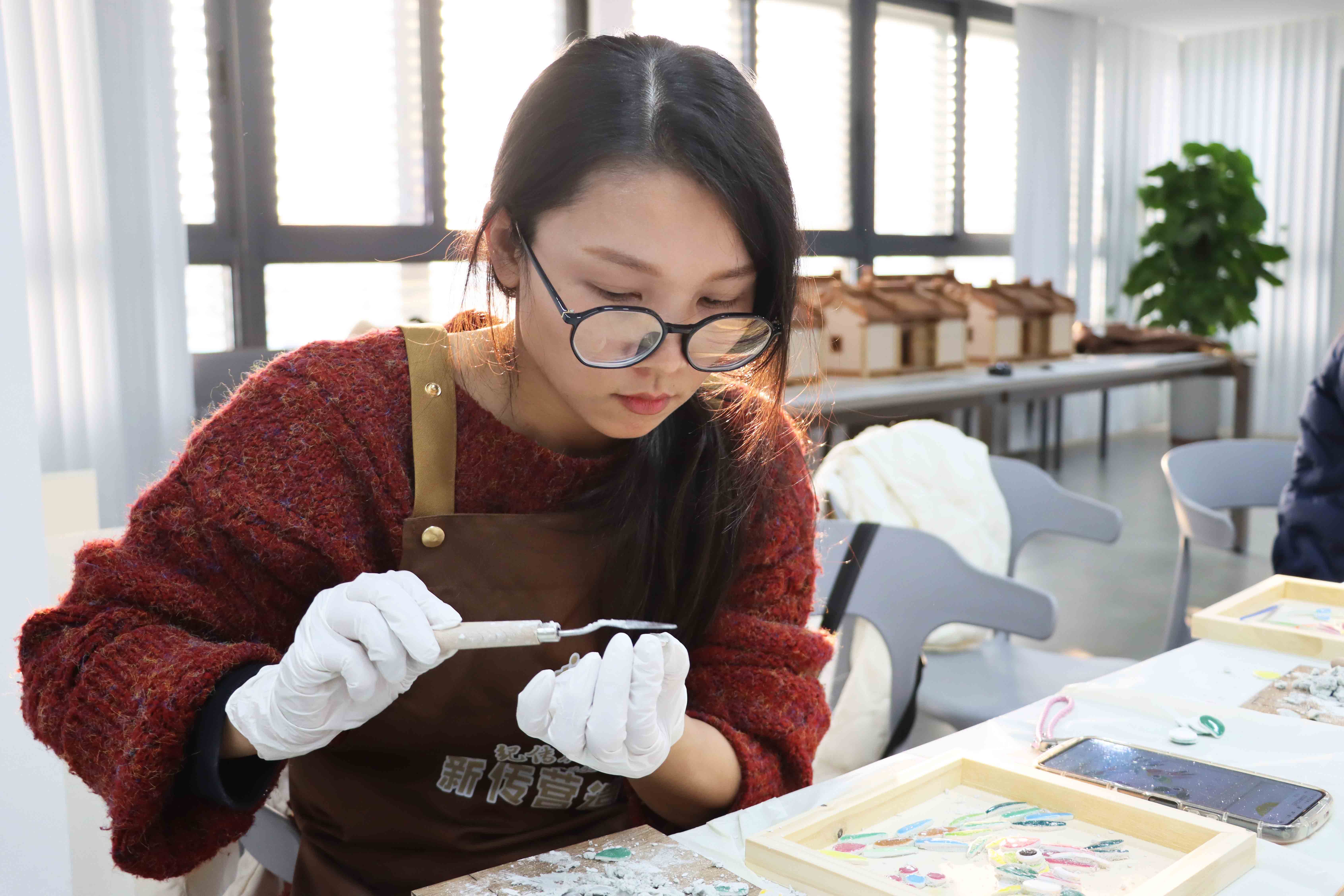 正值第114个 “三八”国际妇女节,薪传营造学堂举办女神节专场非遗项目——“嵌瓷”体验活动