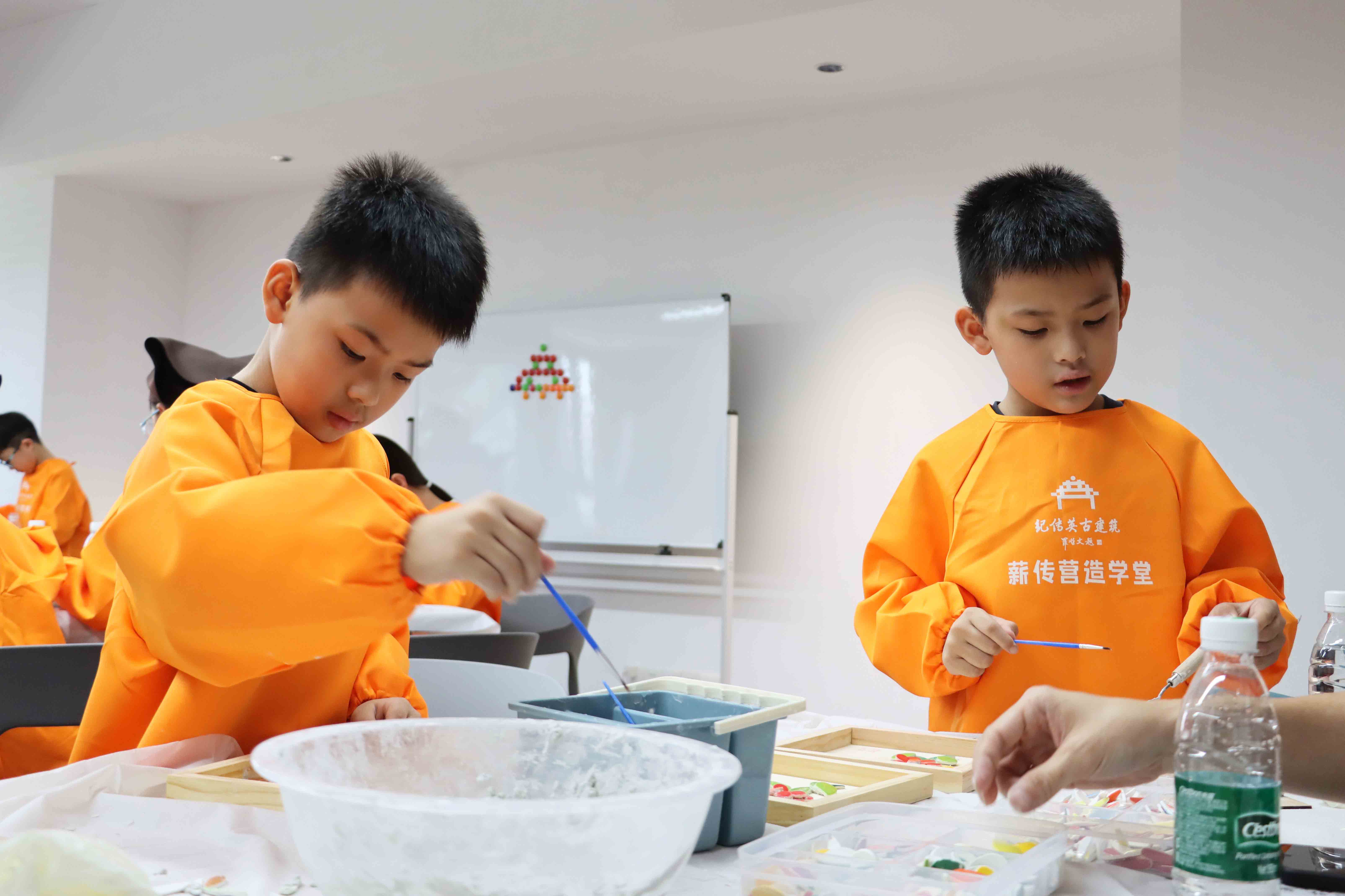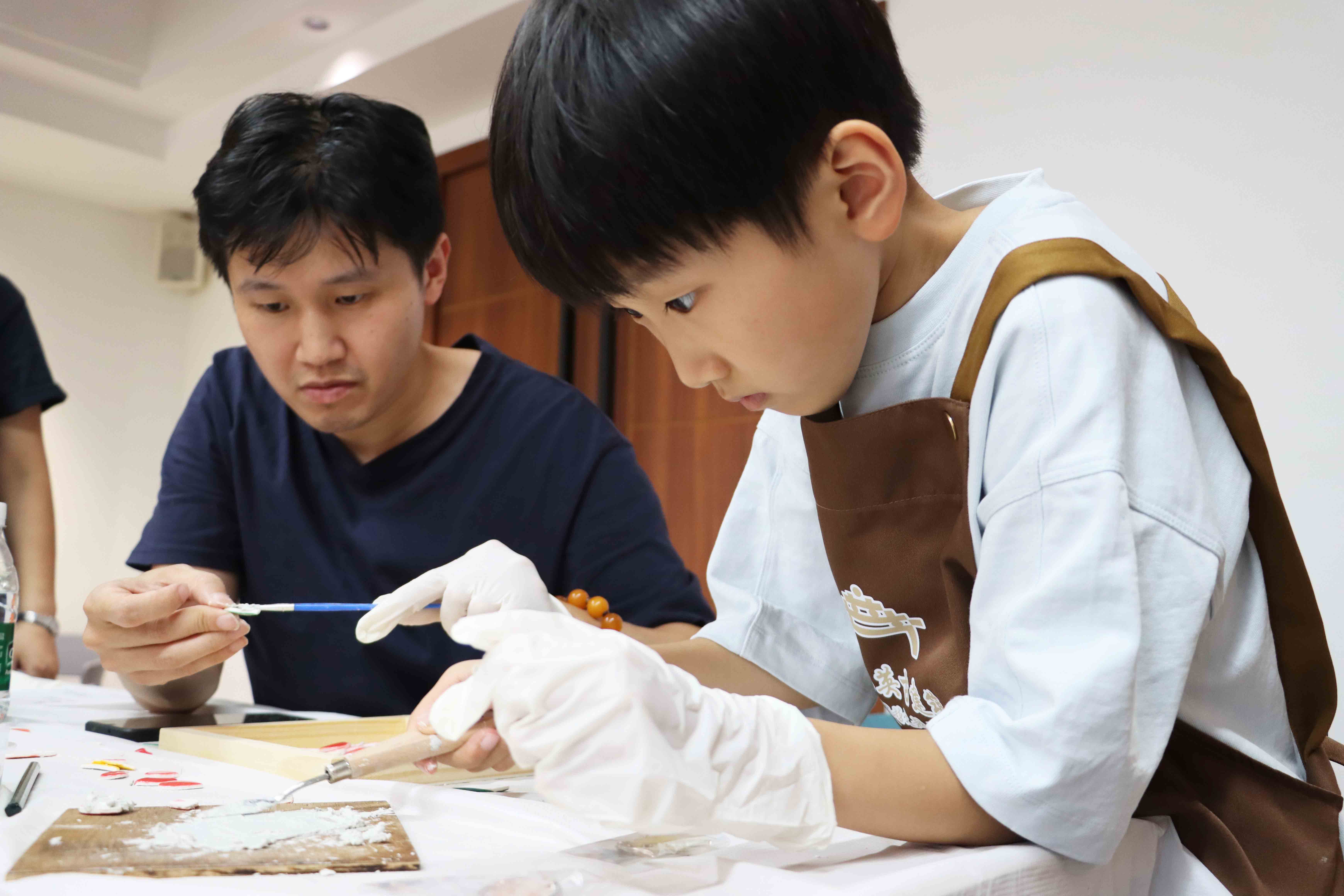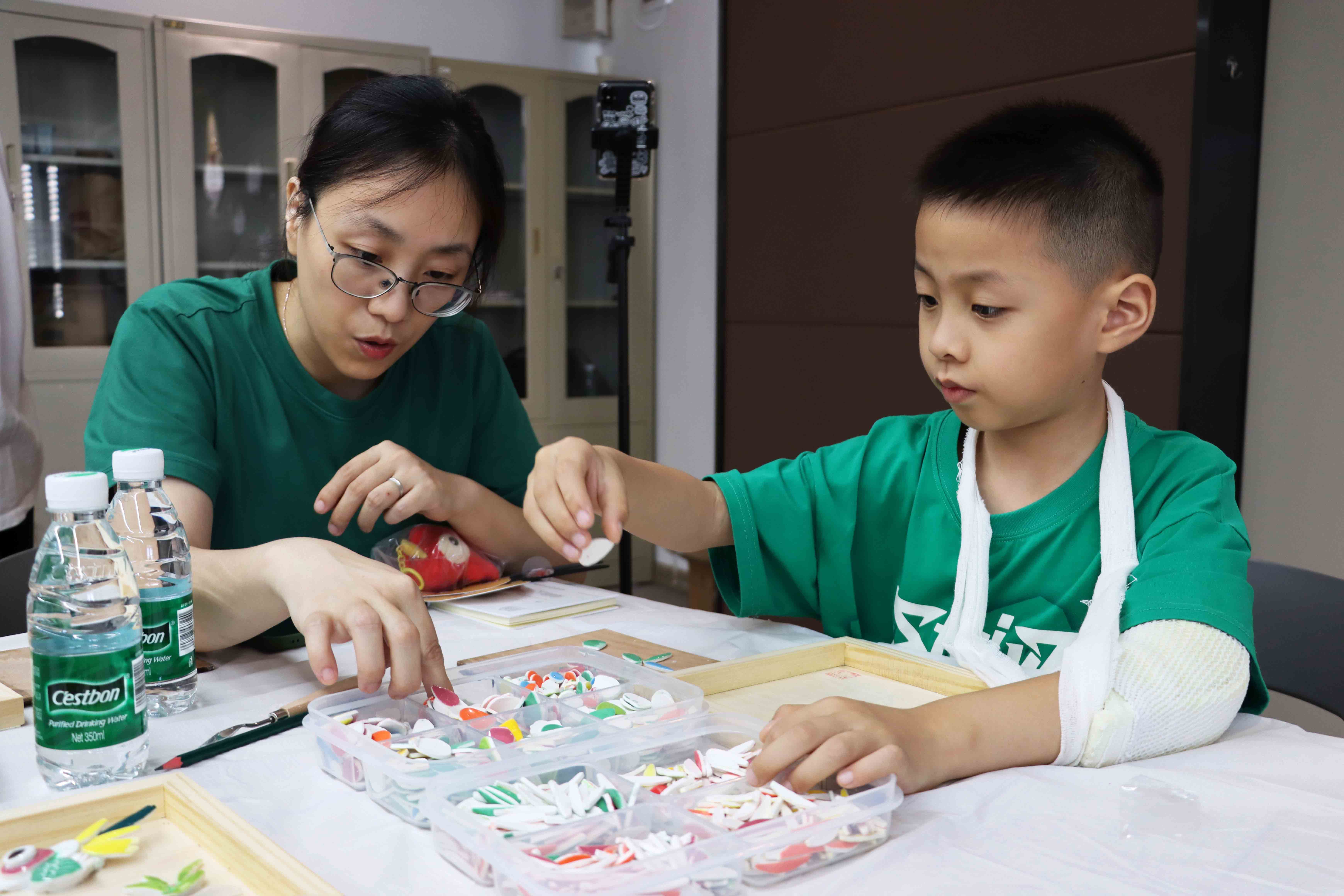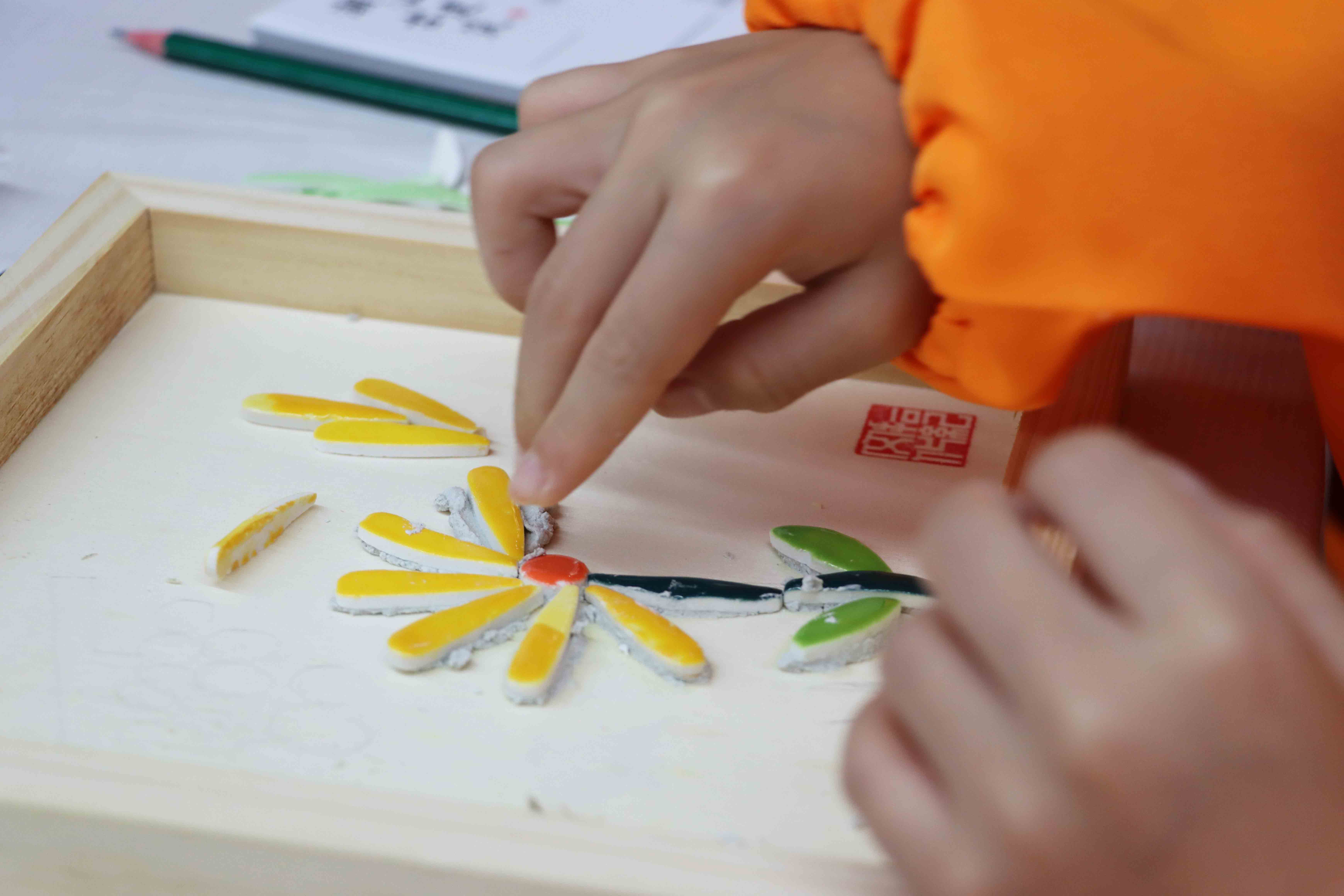 家长与孩子共同制作嵌瓷作品,让孩子发挥想象力与创作力,在实践中感受嵌瓷技艺的魅力,拼贴瓷片的过程也让孩子锻炼了动手和动脑能力。