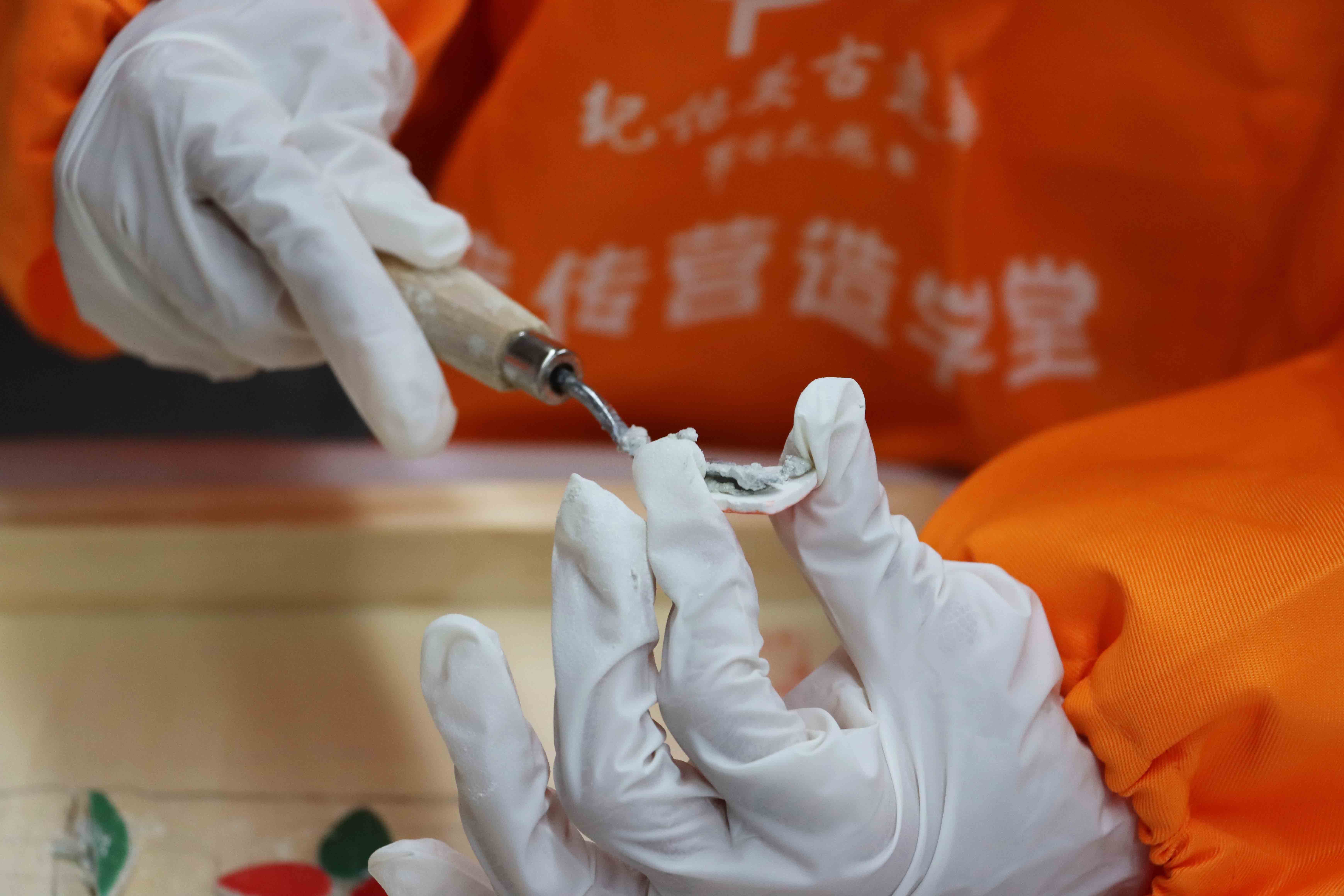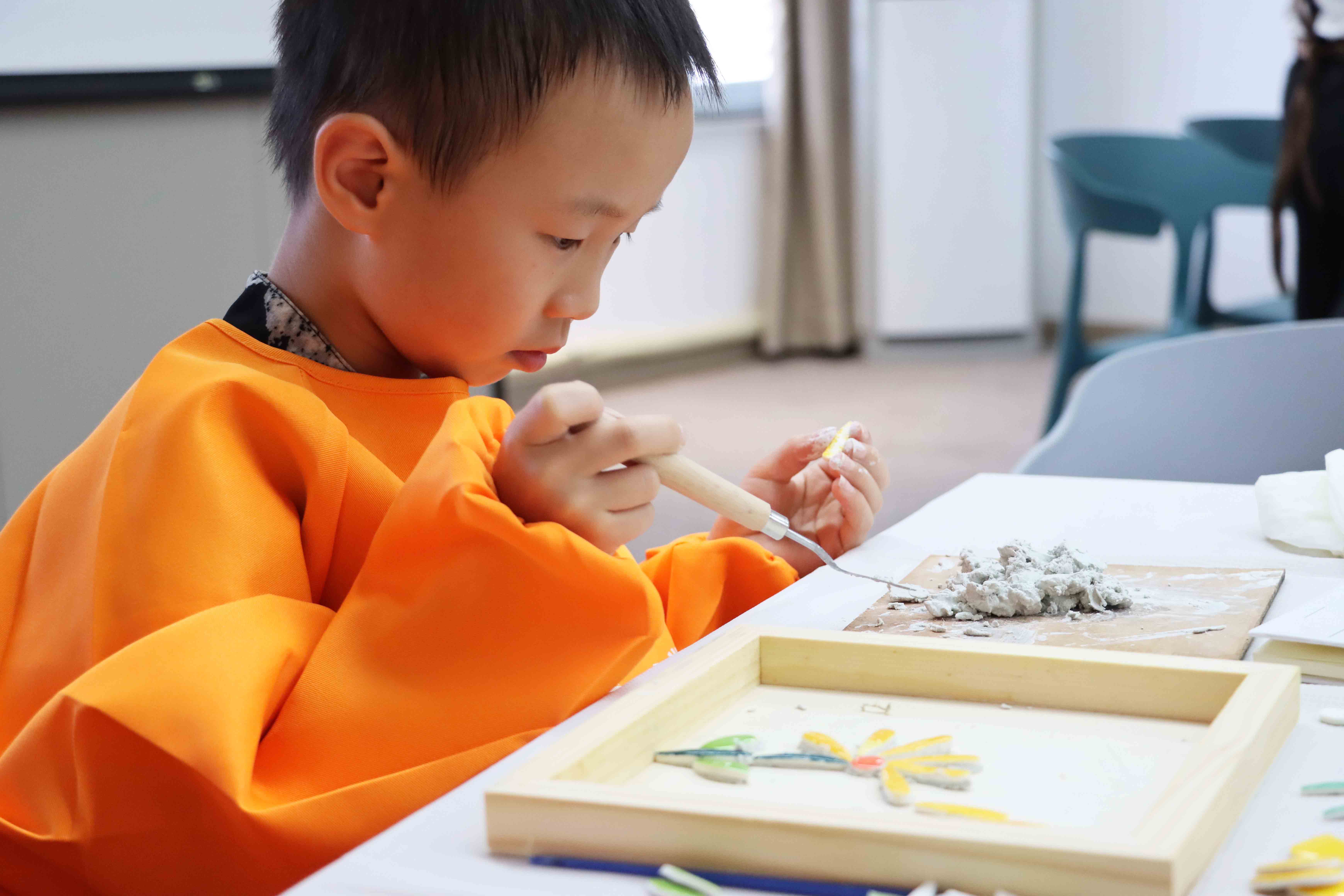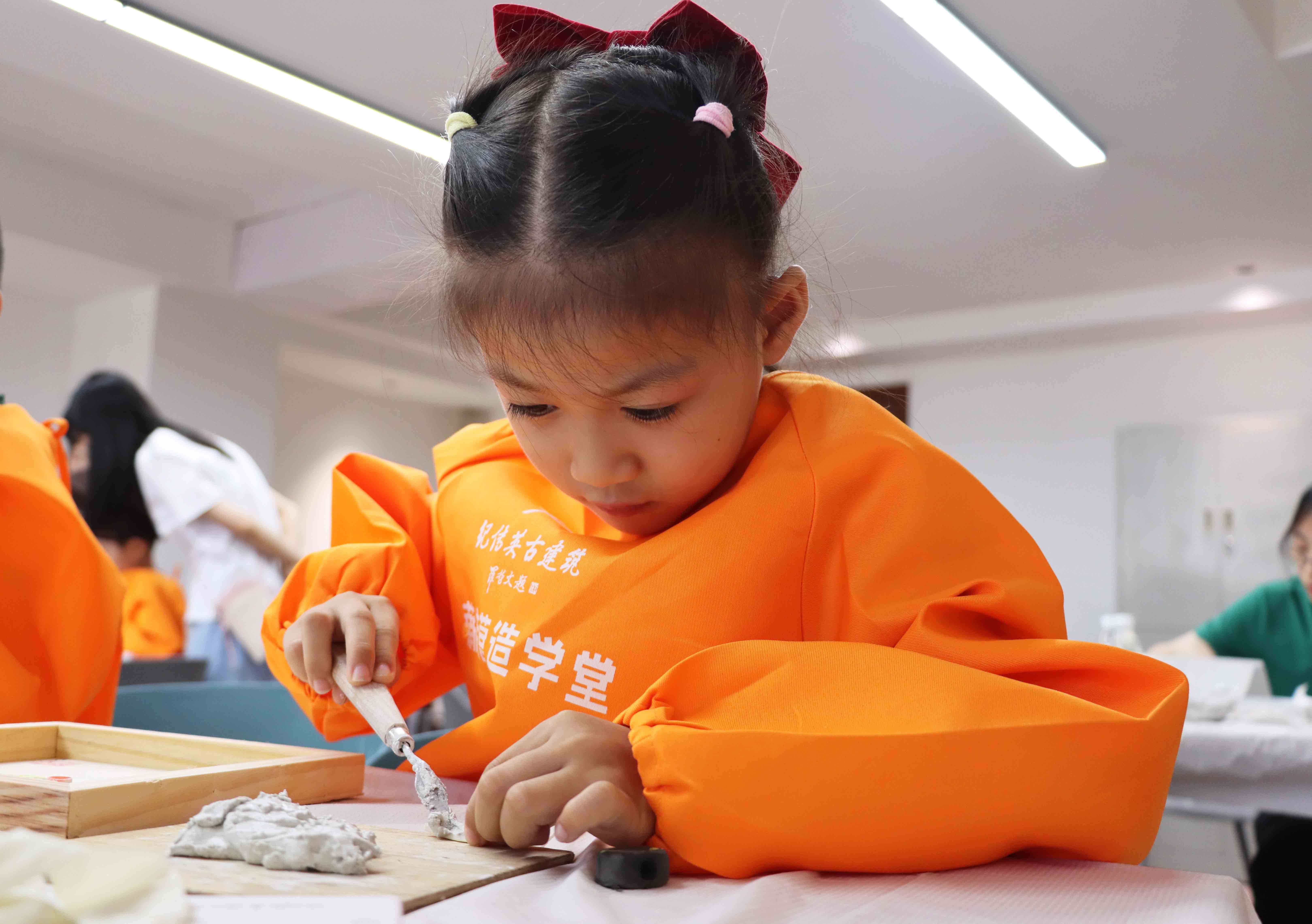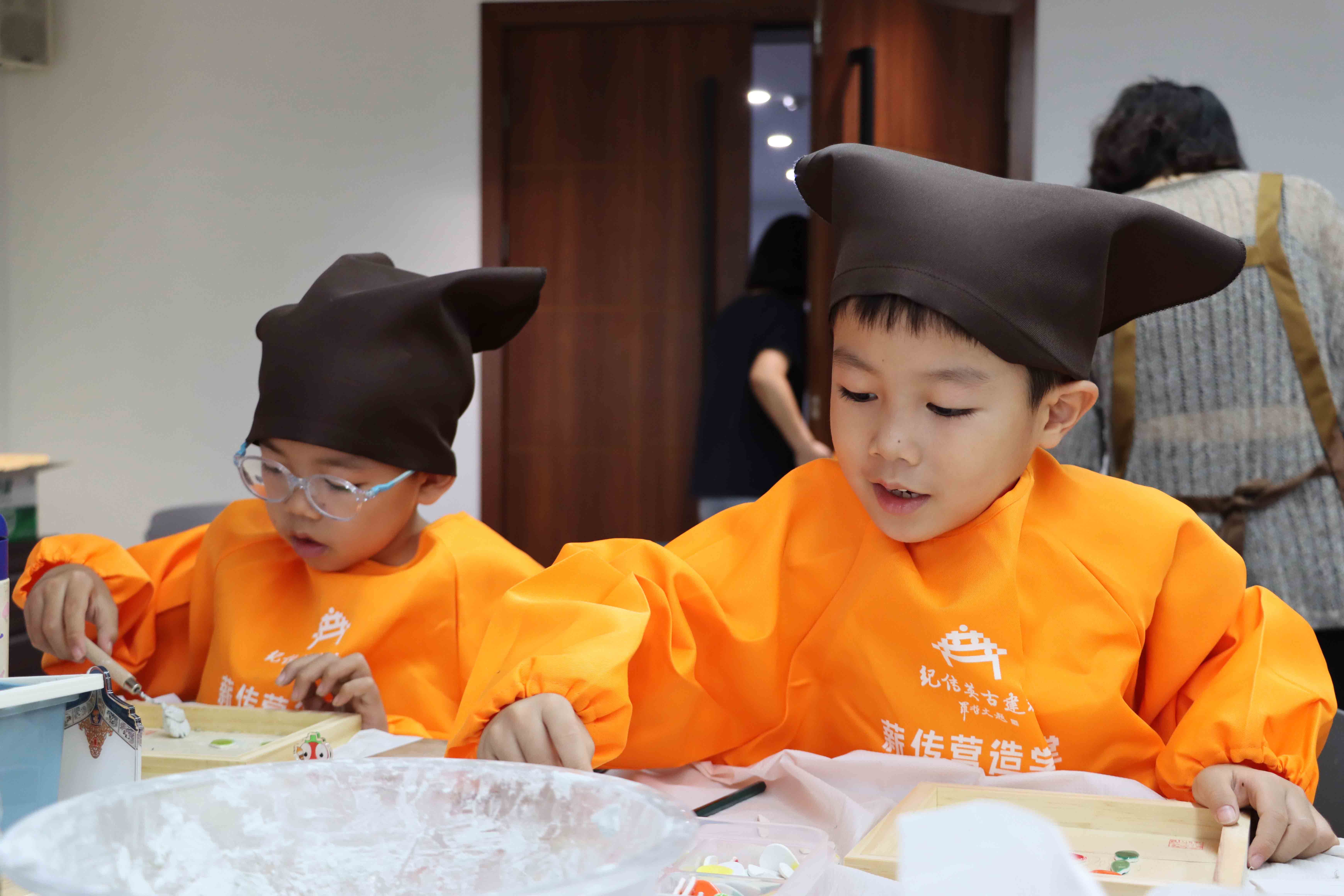 家长与孩子共同制作嵌瓷作品,让孩子发挥想象力与创作力,在实践中感受嵌瓷技艺的魅力,拼贴瓷片的过程也让孩子锻炼了动手和动脑能力。