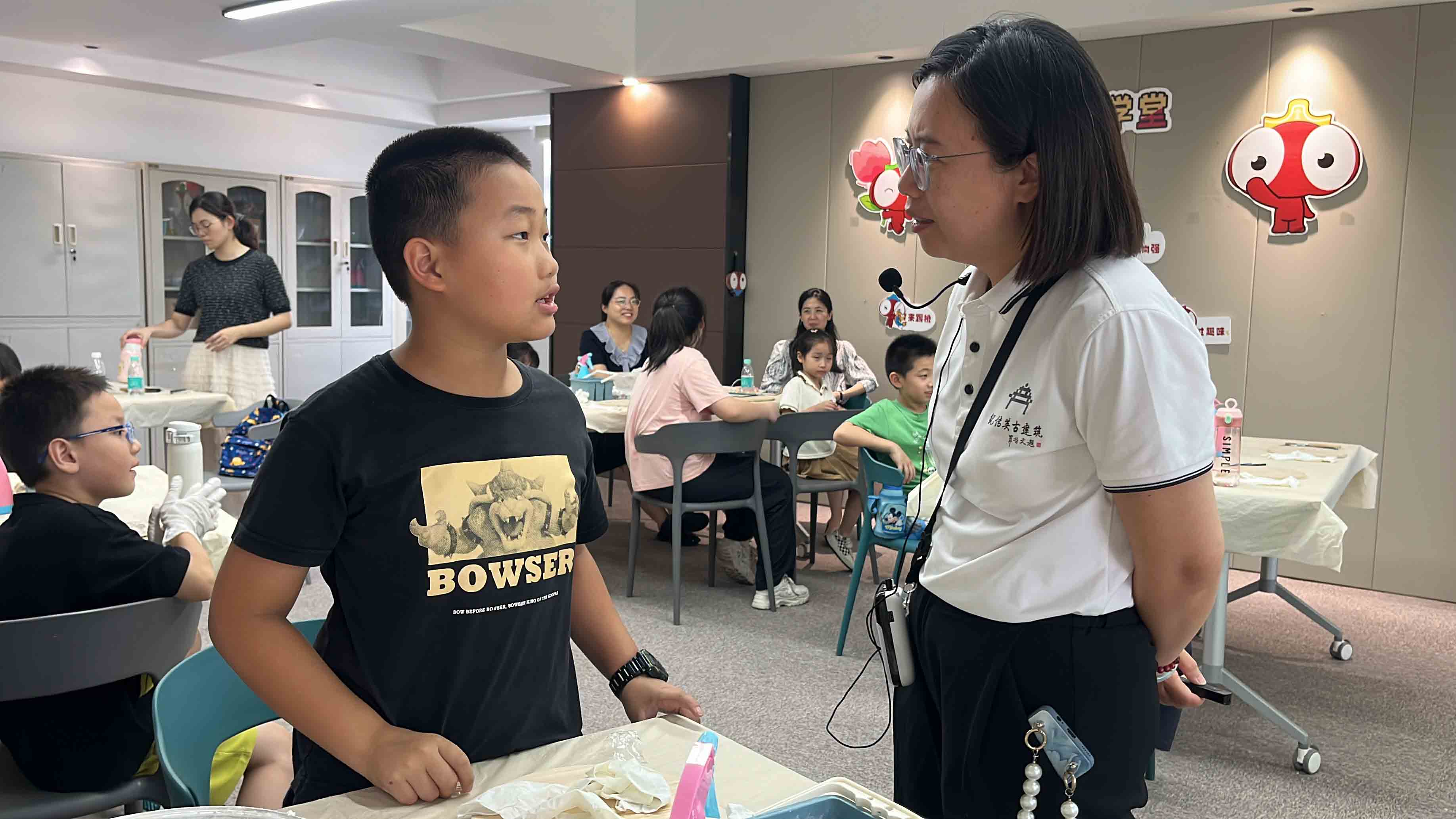 气氛活跃的非遗古建知识小课堂,通过问答的方式,引导孩子们动脑思考,把从展厅学习到的知识活学活用起来,加深孩子们对古建筑的了解。