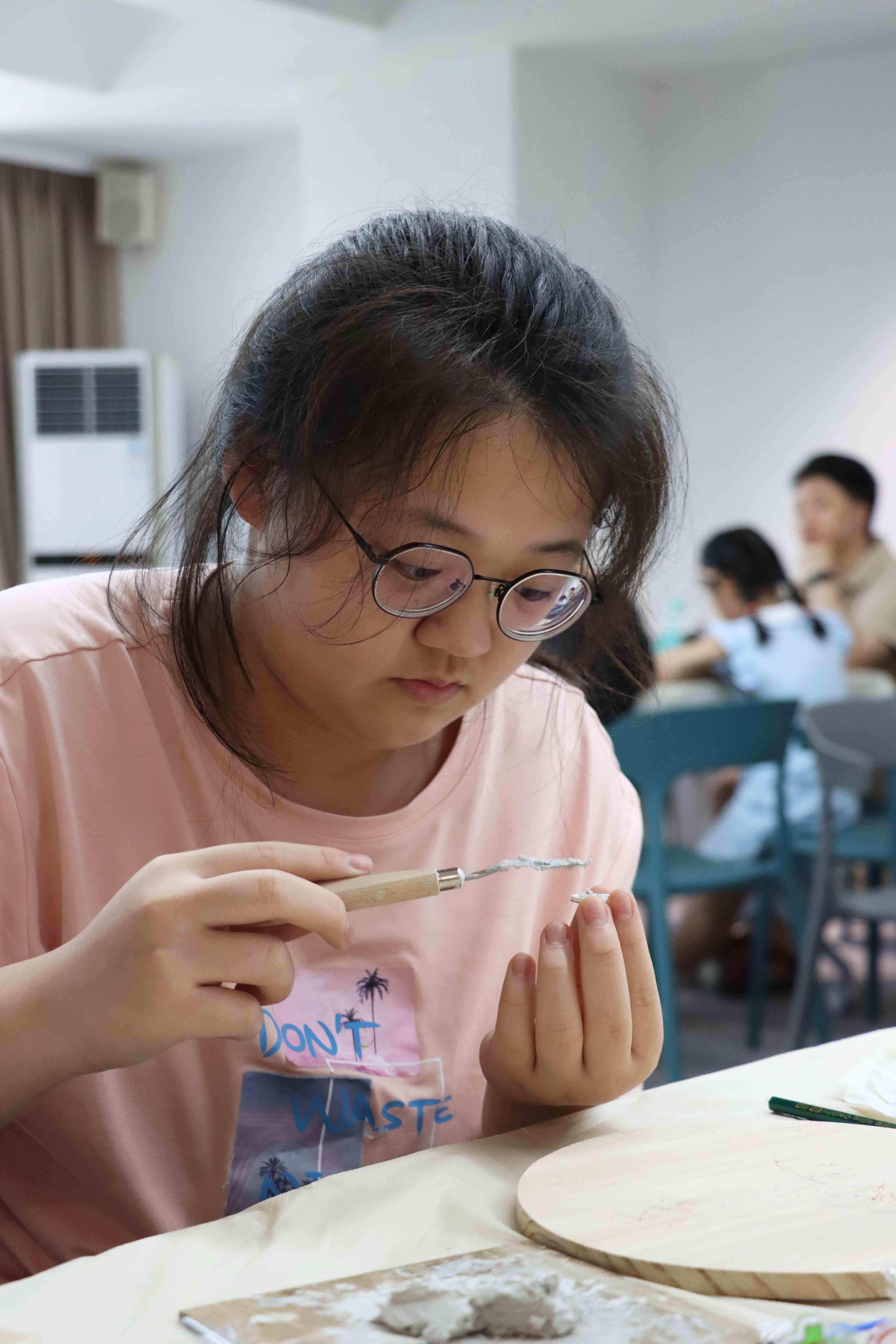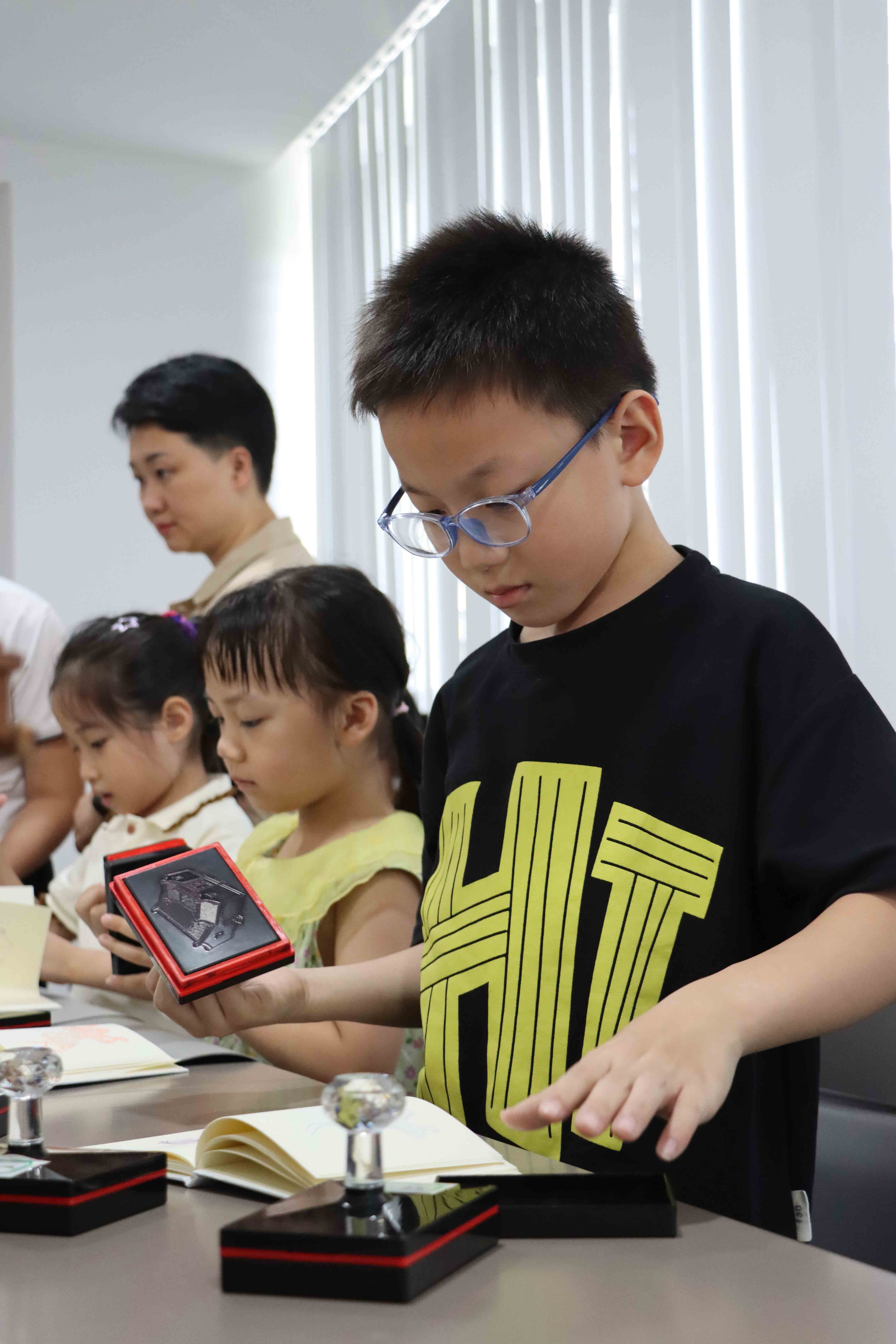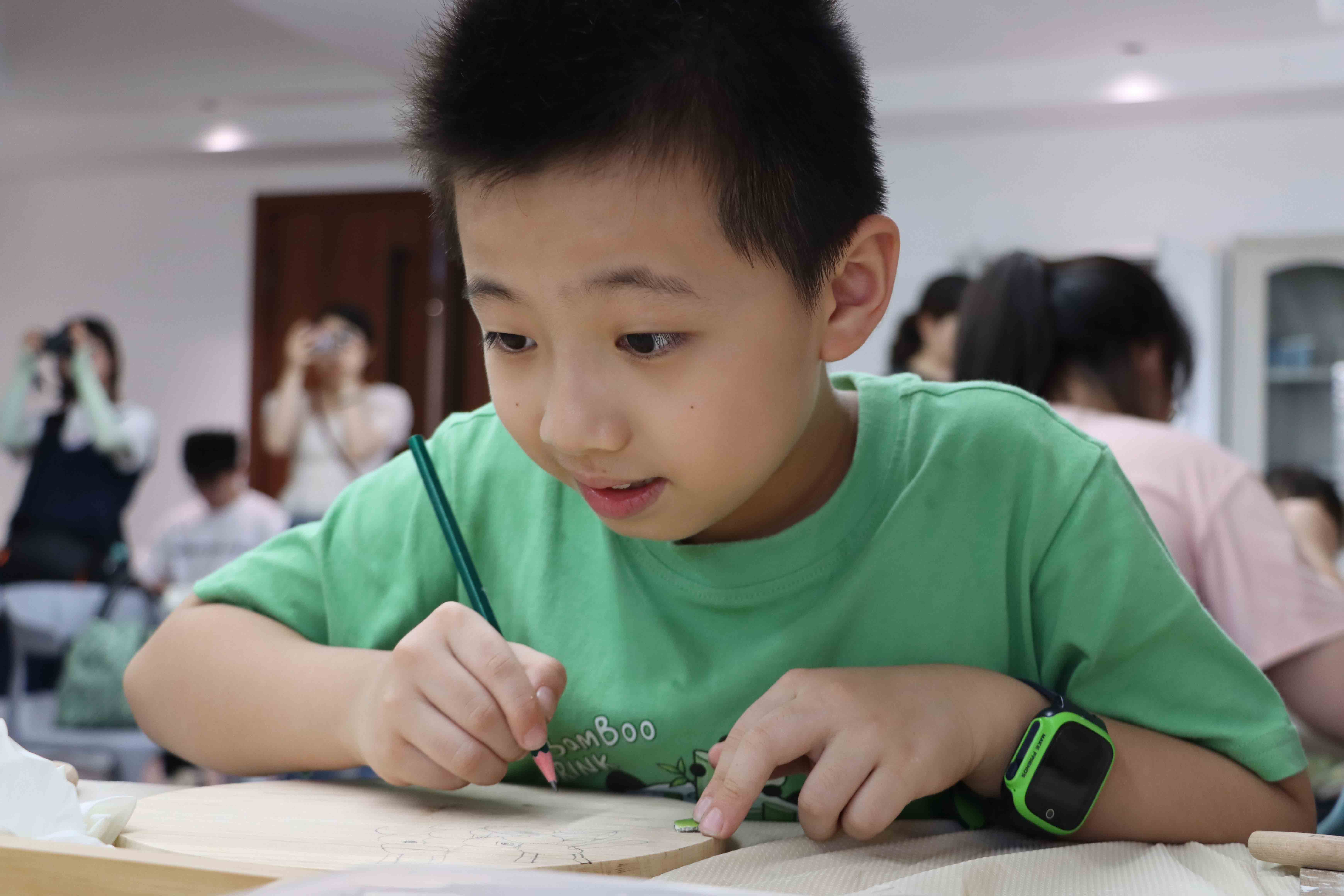 本次活动组织青少年前往国家级非遗项目潮汕古建筑营造技艺保护单位纪传英古建筑营造有限公司,开展多项具有代表性的古建筑非遗体验项目。在导师的讲解下,青少年参观潮汕古建筑营造技艺展厅,了解古建筑承载的特定历史时期的文化内涵和社会历史,学习木雕、嵌瓷、泥塑、彩绘技艺等潮汕古建筑营造技艺,收集古建筑印章,从复杂的工序和精美的作品中学习体会匠人对技艺的热爱和对美的追求。