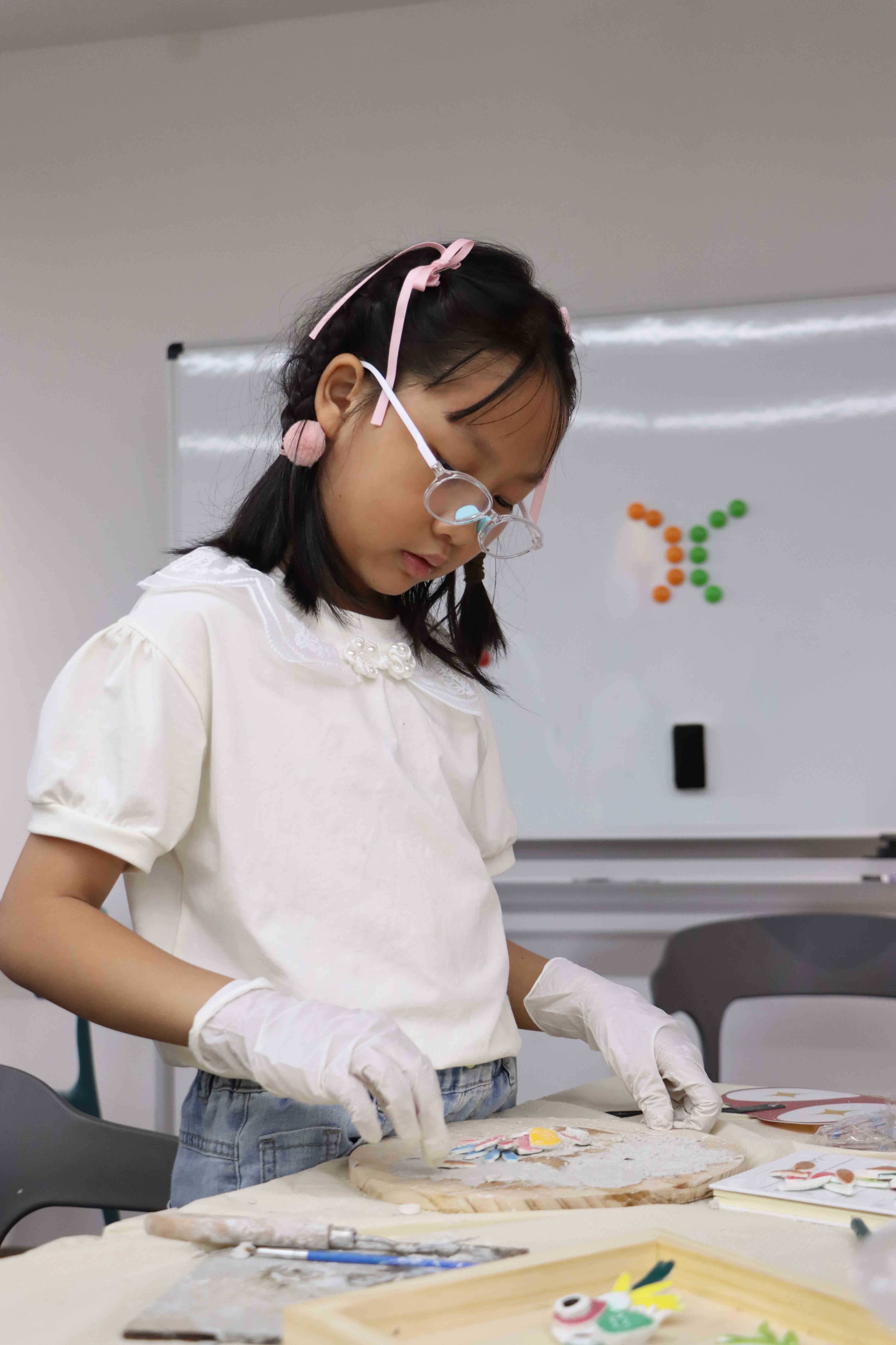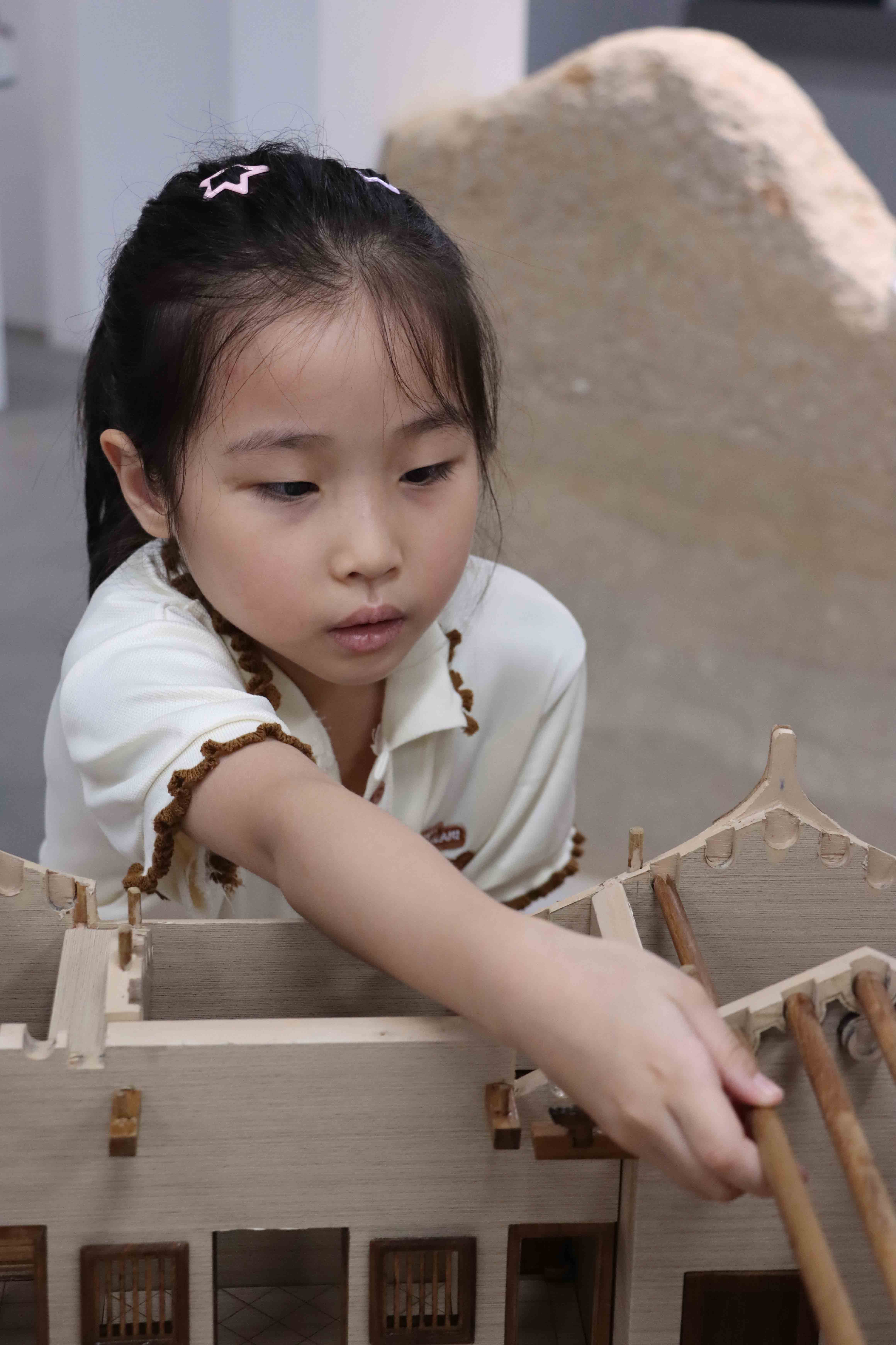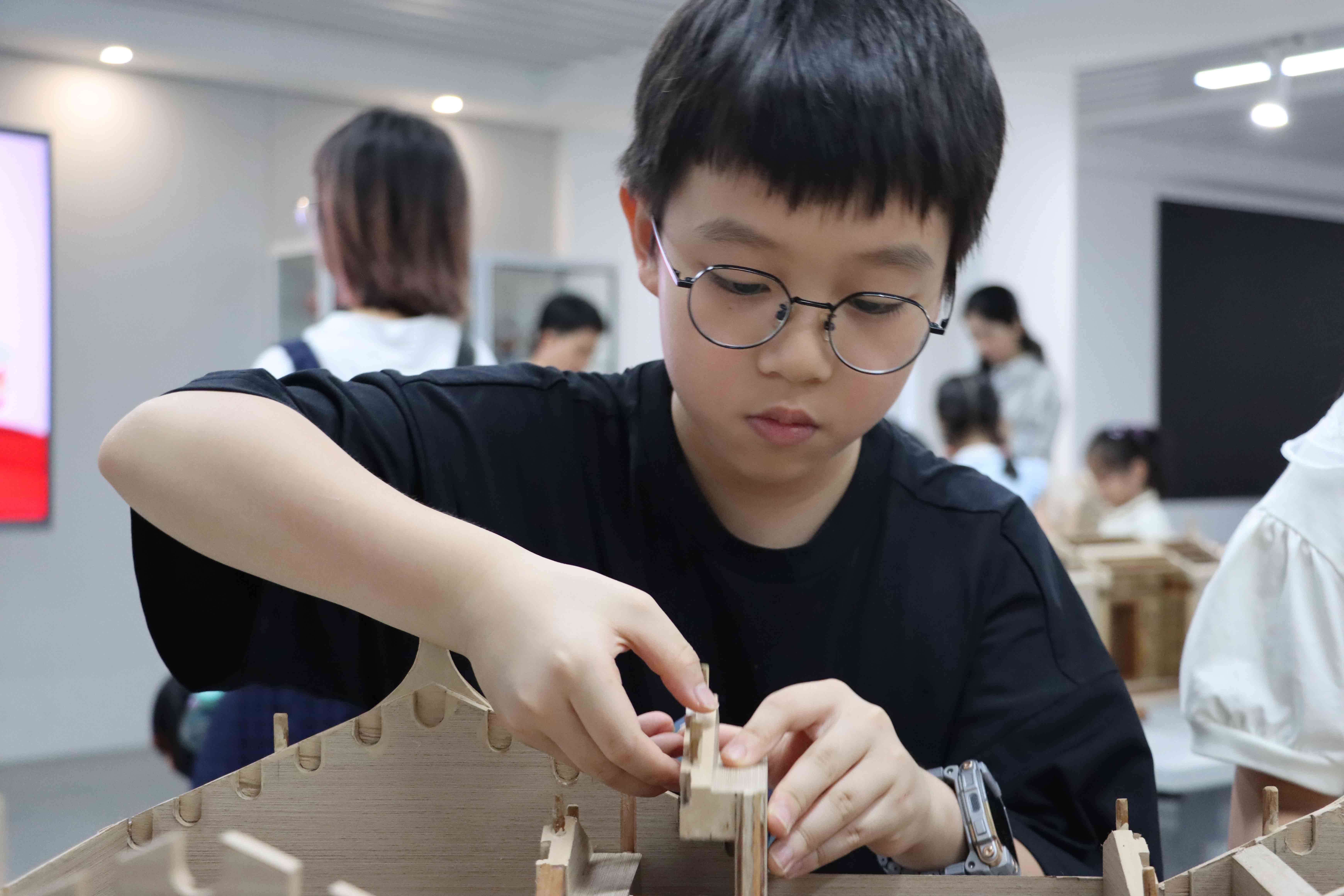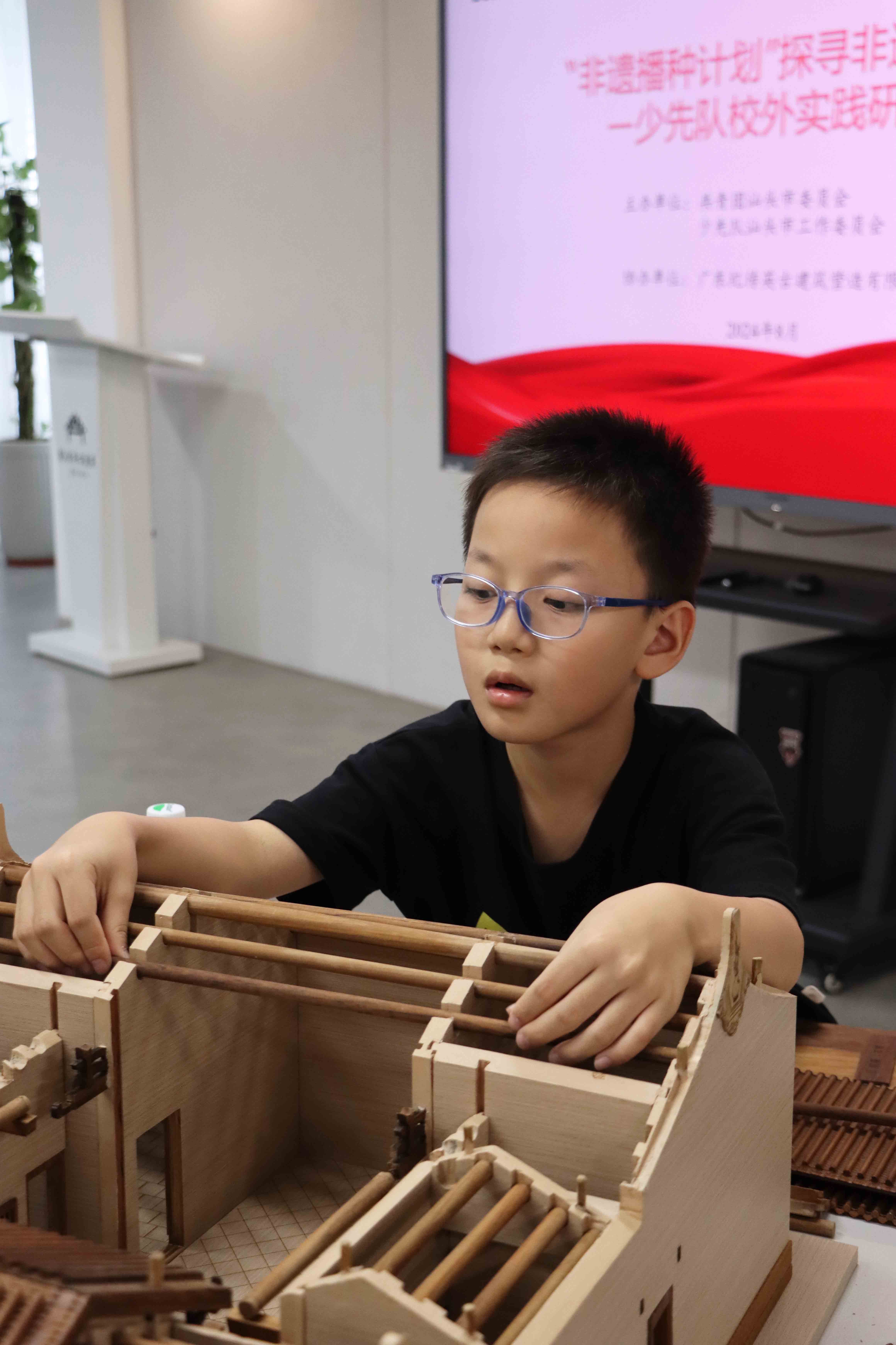 通过搭建古建筑模型、动手制作“嵌瓷”等多项非遗技艺体验活动,青少年在实践中探索学习潮汕古建筑知识和宝贵的潮汕非遗工艺,提高动手能力、艺术鉴赏能力。