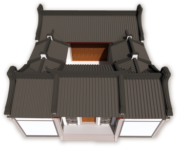 潮汕传统民居——四点金“四点金”是潮汕传统民居中的典型建筑格局。因其四面山墙角形如汉字“金”字而得名。平面布局为前、后二进,两侧南北厅,格仔中间天井、后座三开间,中间为大厅,左右为主房。大厅是祭祖的地方,两边的“大房”是长辈居住的卧室,门厅两侧的“下房”是晚辈与仆人的居室,天井左右有回廊的南北厅,有的还有两间小房,作厨房或柴草房,又称“格仔”。 “格仔”与大房之间有通往外面的侧门,称“子孙门”,取多子多孙出入之间。 -
