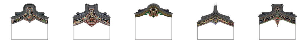 金式厝头为圆形,无棱角;木式的较为高且直,有棱角;土式为方平,矮胖;火式为尖峰或三角;水式为波浪或三个金式组合。