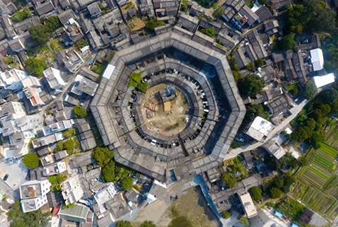 道韵楼,俗称大楼,位于广东省潮州市饶平县北部山区三饶镇南联村,始建于明成化十三年(1477年),万历十五年(1587年)完工,占地面积约10000平方米。是迄今被发现的我国最大的客家土楼,有着400多年的历史。道韵楼以“古、大、奇、美”著称,整座楼呈八卦形,卦与卦之间巷隔开。楼内充满8的倍数——72间房、32口井、112架梯。围楼内广场中有两口井,象征太极中的两仪阴阳鱼眼。坐南朝北,周长328米,高11.5米,墙厚1.6米。道韵楼内部有雕梁画栋、倒吊莲花、壁画、雕塑等,是历史、文化、民俗等的观光胜地。2006年5月25日,道韵楼作为明代古建筑,被国务院批准列入第六批全国重点文物保护单位。